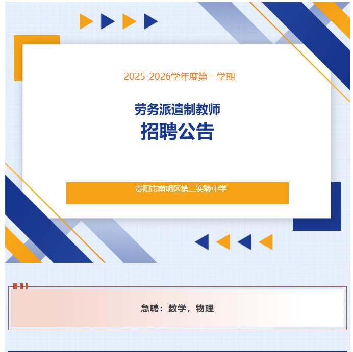 貴陽市南明區(qū)第二實驗中學(xué)2025-2026學(xué)年度第一學(xué)期勞務(wù)派遣制教師招聘公告